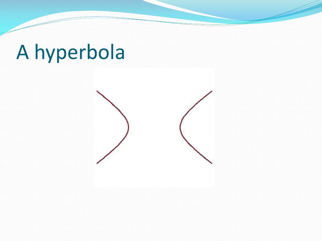 The eccentricity of a hyperbola • The eccentricity, e, of a hyperbola is defined to the quotient e = c/a just as it is in the elliptical case • As c > a, we have e > 1 for all hyperbolas