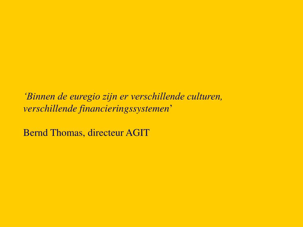 ‘Binnen de euregio zijn er verschillende culturen, verschillende financieringssystemen’ Bernd Thomas, directeur AGIT