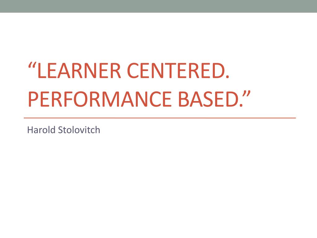 “Learner centered.Performance based.” Harold Stolovitch