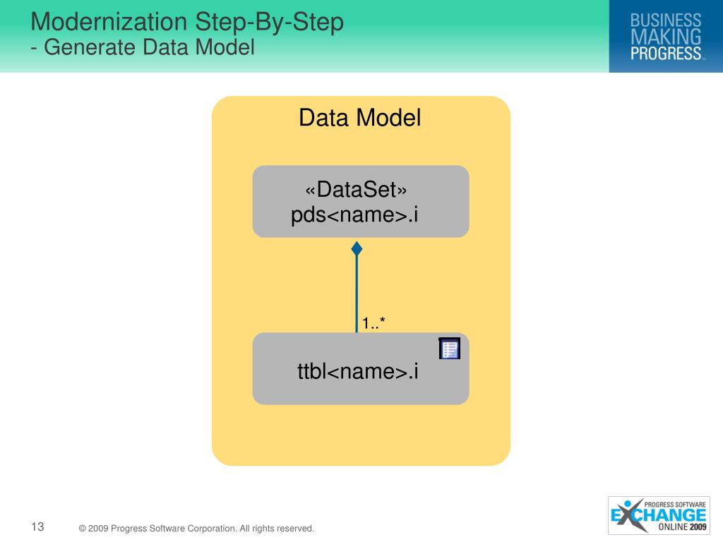 Modernization Step-By-Step- Generate Data Model Data Model «DataSet» pds<name>.i 1..* ttbl<name>.i