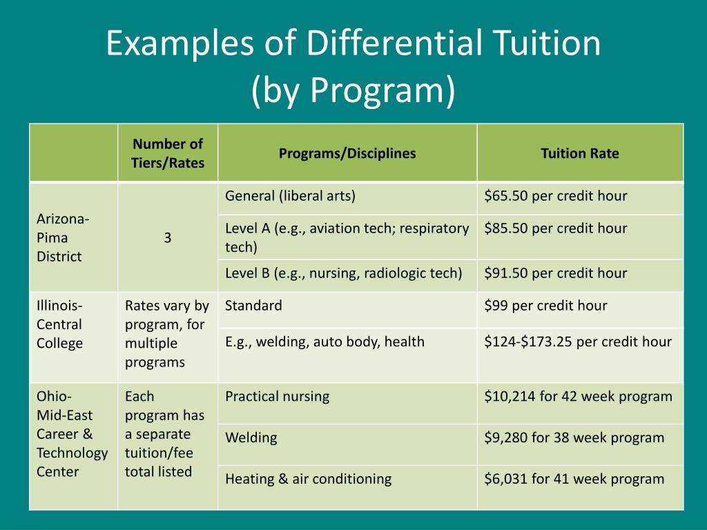 Differential Tuition • 11 out of the 20 states • Some use it broadly, some selectively • Some marginally higher, some much higher