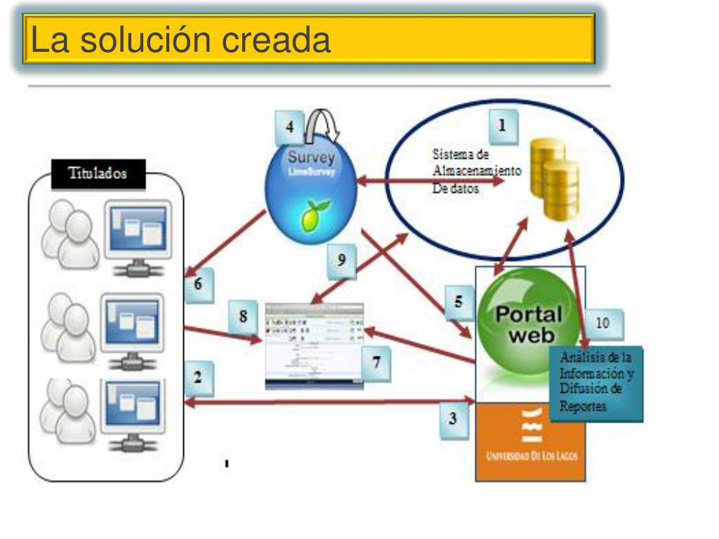 Un Portal Web que se constituya en el nexo entre Titulados y la Universidad y un software que permita la administración on-line de las encuestas aplicadas visualizado desde el Portal. Bajo la premisa de trabajar con software libre, se eligió para el desarrollo del Portal Web el CMS Joomla versión 1.5 y para la gestión de encuestas al programa Lime Survey versión 1.85. La solución creada
