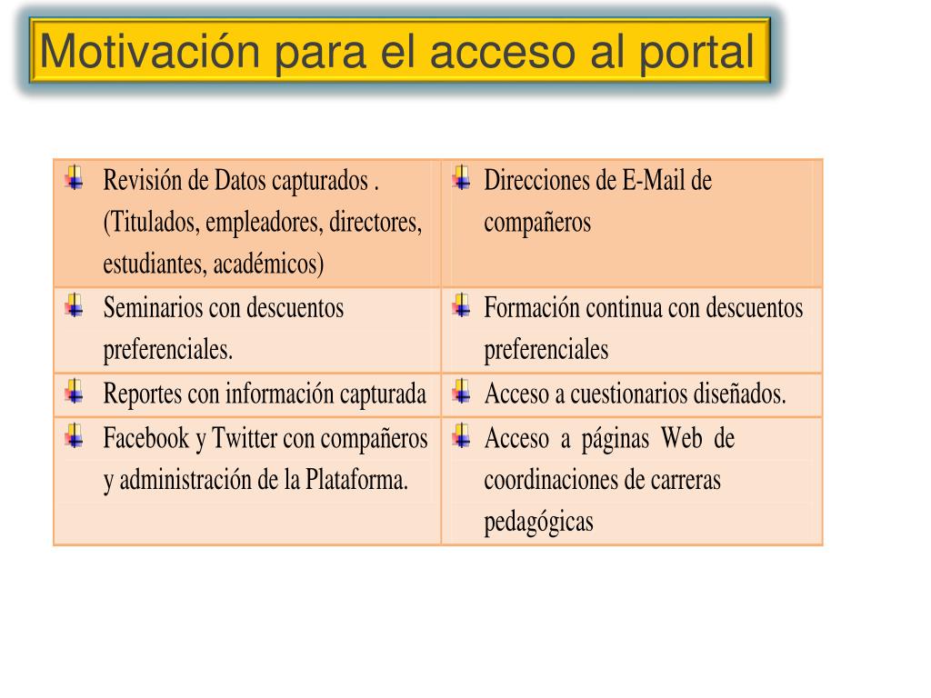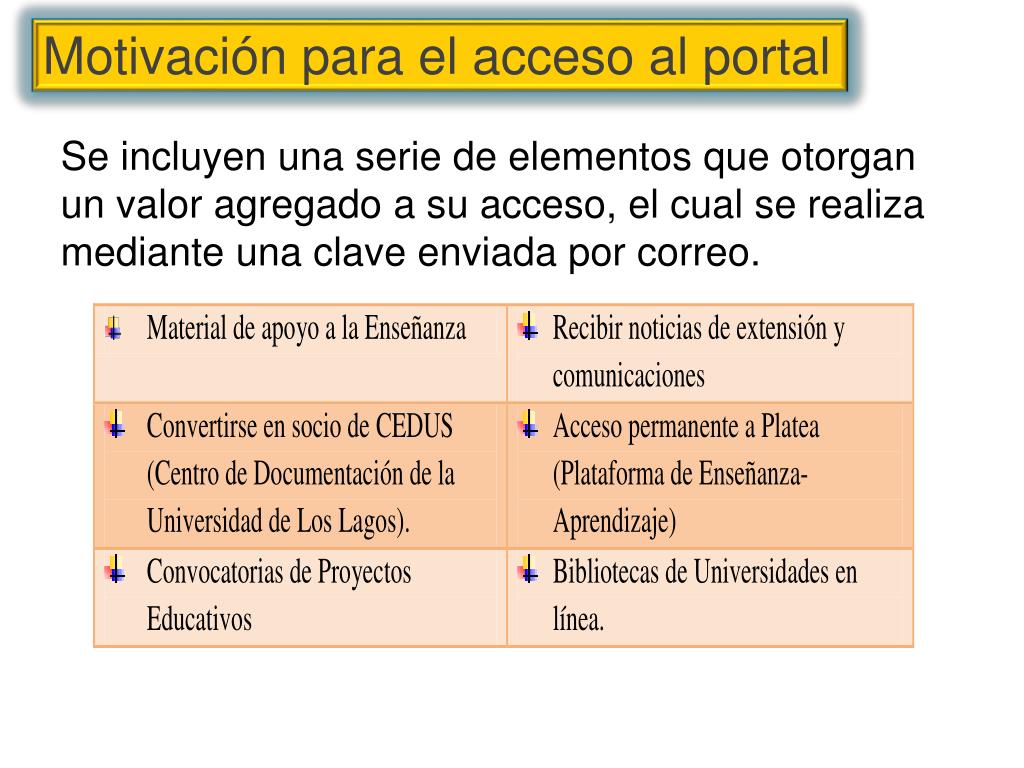 Motivación para el acceso al portal Se incluyen una serie de elementos que otorgan un valor agregado a su acceso, el cual se realiza mediante una clave enviada por correo.