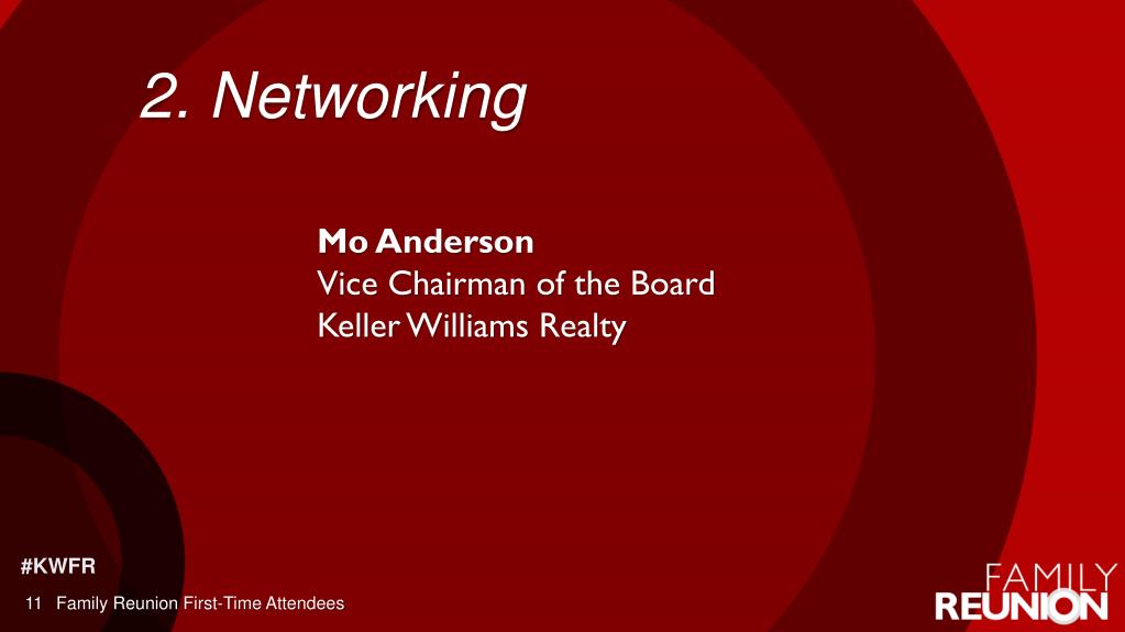 2. Networking Mo AndersonVice Chairman of the BoardKeller Williams Realty Family Reunion First-Time Attendees