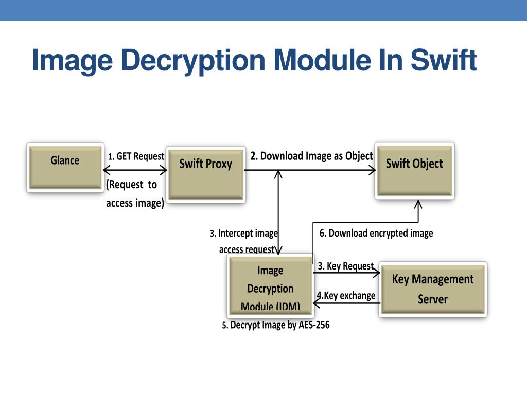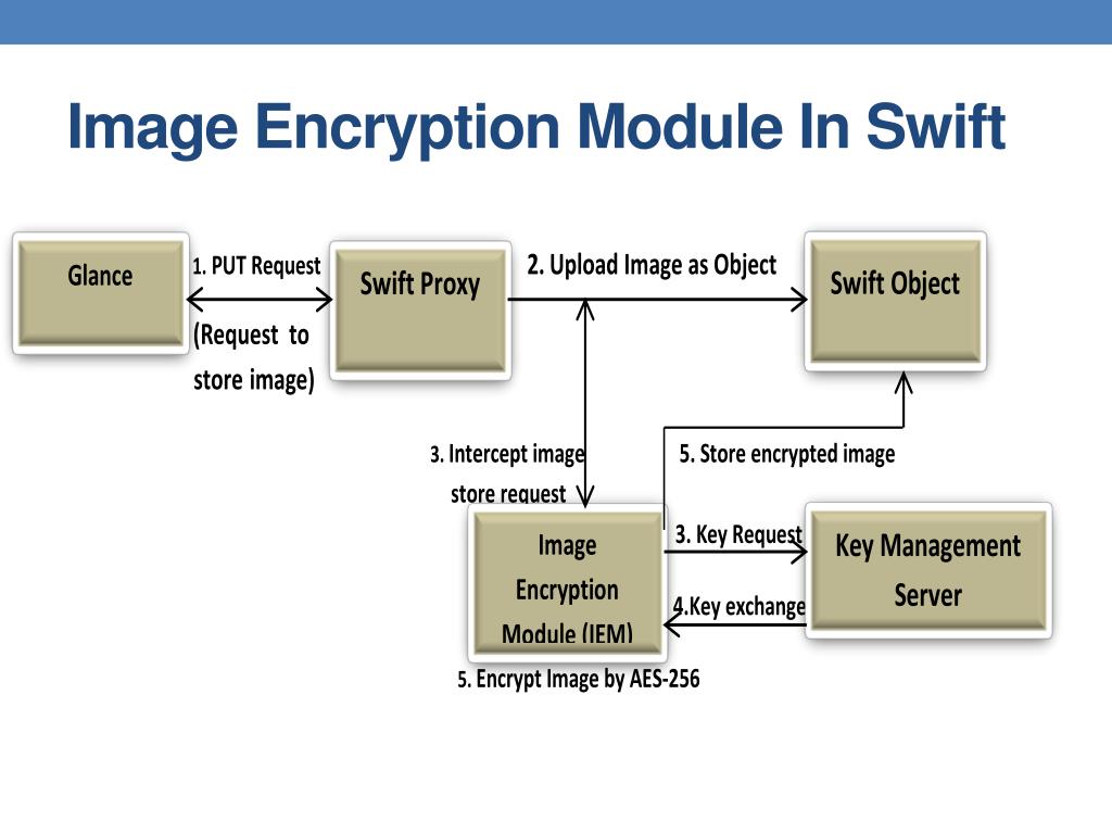 Future Directions • Encryption of accounts to protect users and images lists in Swift. • Integration of Key Management protocol with Swift image encryption. • Encryption of persistent storage used by virtual machines during execution.
