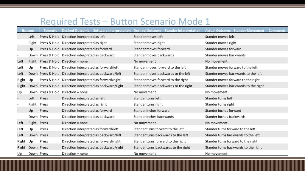Design Summary – Remote Control • Used by therapist to control the stander • Two Modes: • Override Mode • Assistive Mode • Sends control signal to the stander using a wired serial connection • Uses TI Stellaris Launchpad microcontroller