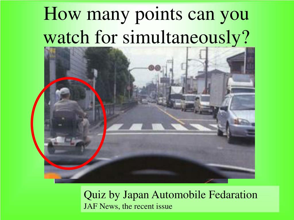 How many points can you watch for simultaneously? Quiz by Japan Automobile Fedaration JAF News, the recent issue