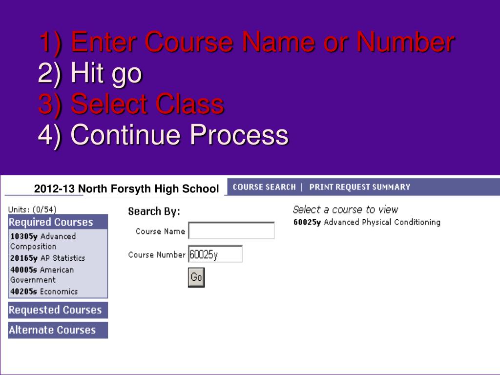 1) Enter Course Name or Number2) Hit go3) Select Class 4) Continue Process 2012-13 North Forsyth High School