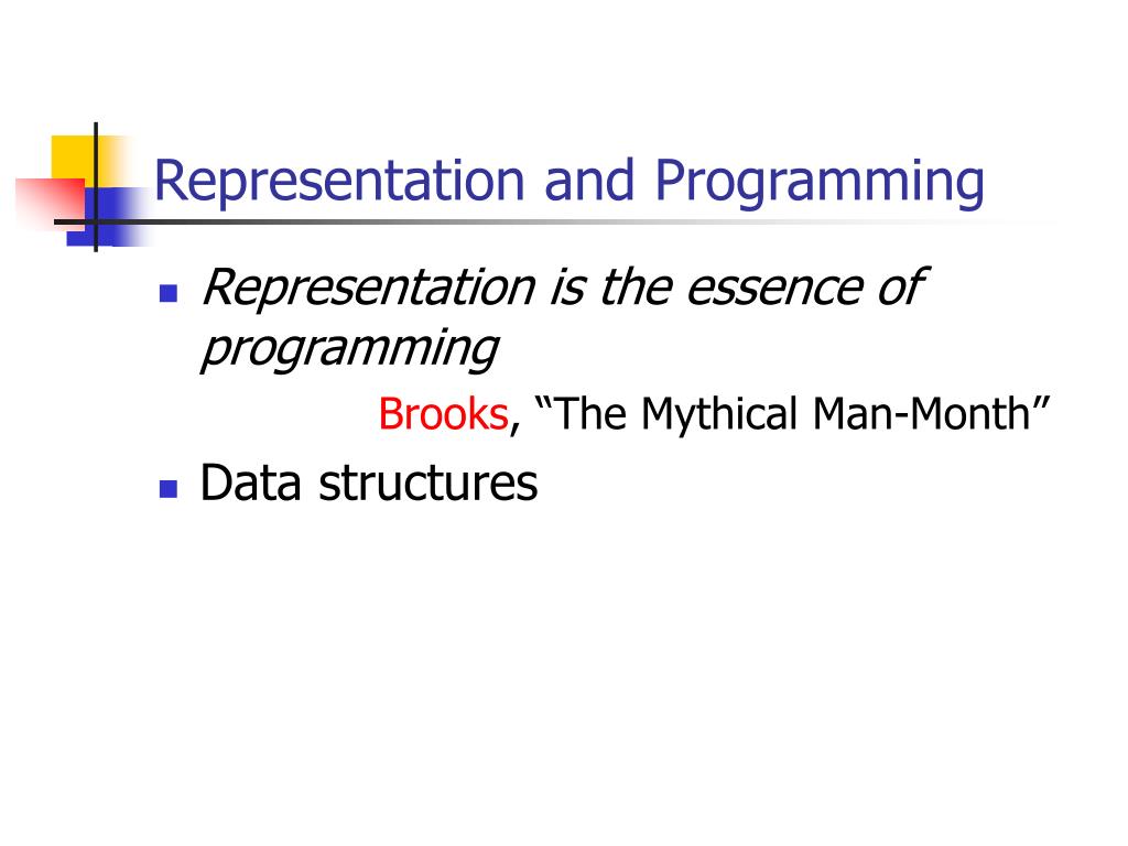 Representation and Programming • Representation is the essence of programming Brooks, “The Mythical Man-Month” • Data structures