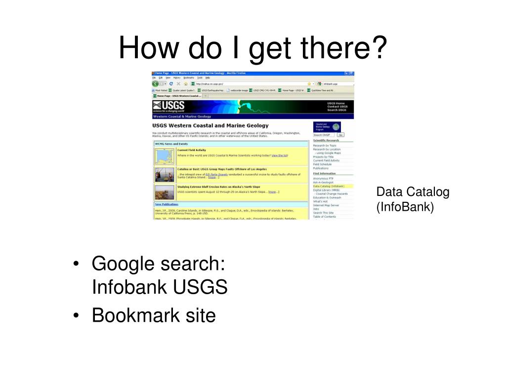 How do I get there? • Google search: Infobank USGS • Bookmark site Data Catalog (InfoBank)