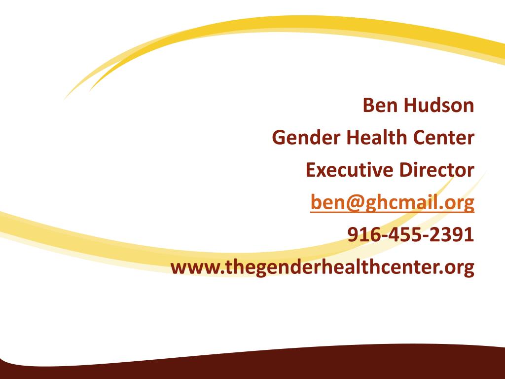 Ben Hudson Gender Health Center Executive Director ben@ghcmail.org 916-455-2391 www.thegenderhealthcenter.org