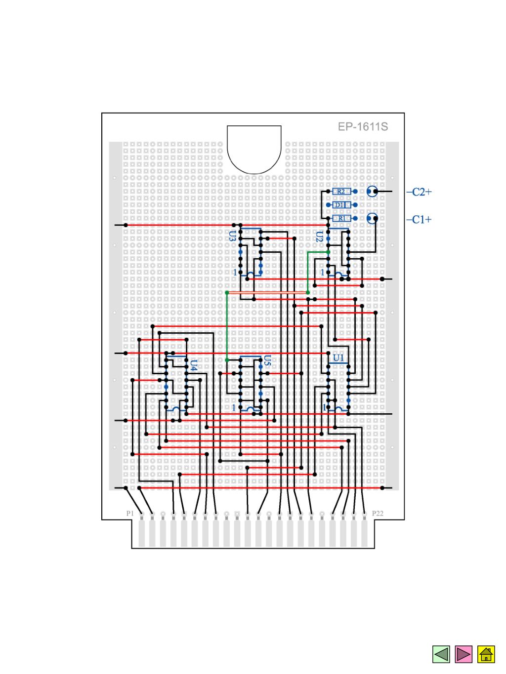 步驟 2 零件定位U1(74LS390),U2(74LS390),U3(74LS153) ,U4(74LS153) ,U5(74LS73) ,R1(330 1/4W) ,C1(2.2μF/16V)