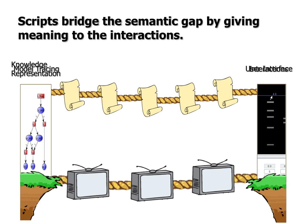 Scripts bridge the semantic gap by givingmeaning to the interactions. Knowledge Representation User Interface Model Tracing Interactions