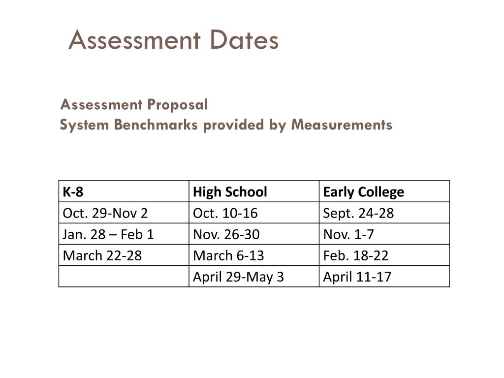 Assessment Dates Assessment ProposalSystem Benchmarks provided by Measurements