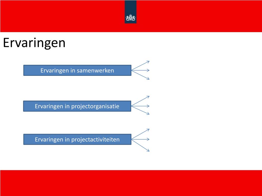 Ervaringen Ervaringen in samenwerken Ervaringen in projectorganisatie Ervaringen in projectactiviteiten
