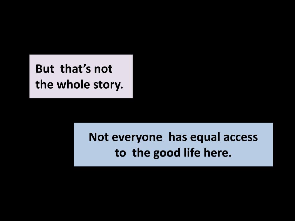 But that’s not the whole story. Not everyone has equal access to the good life here.
