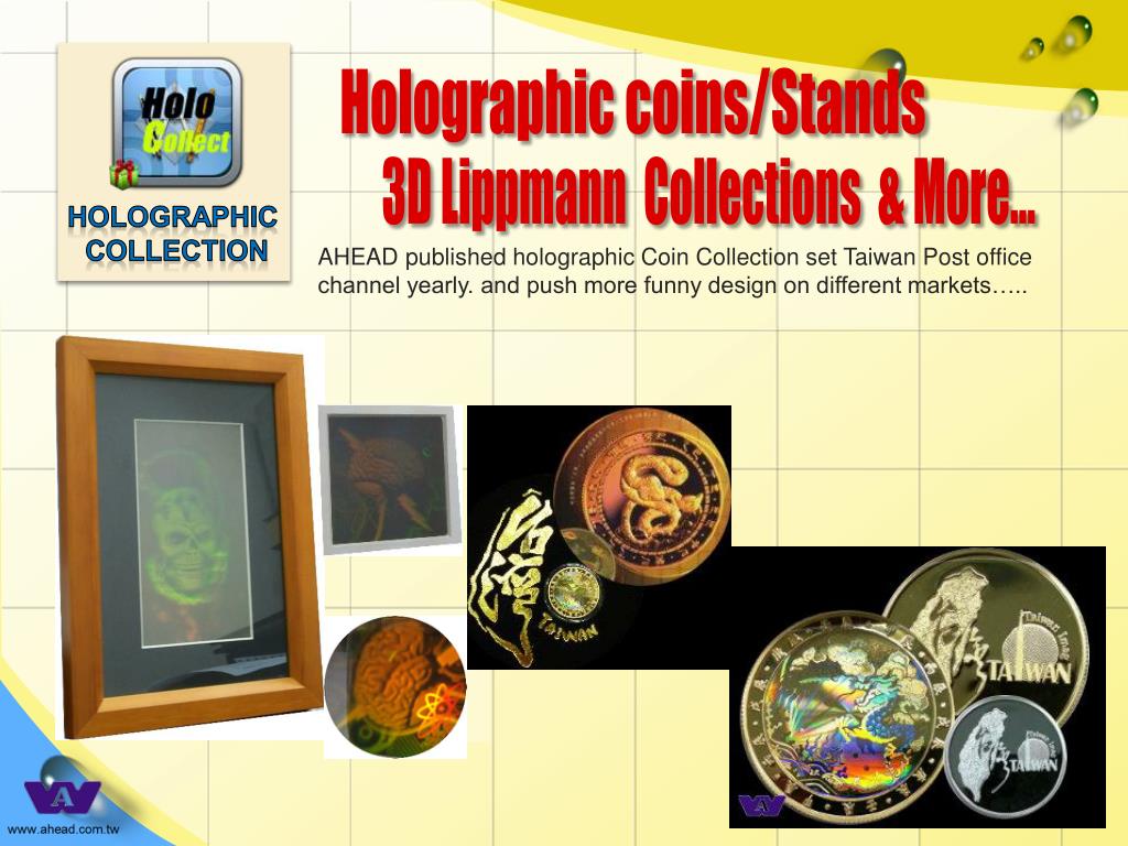 Holographic coins/Stands 3D Lippmann Collections & More… Holographic COLLECTION AHEAD published holographic Coin Collection set Taiwan Post office channel yearly. and push more funny design on different markets…..