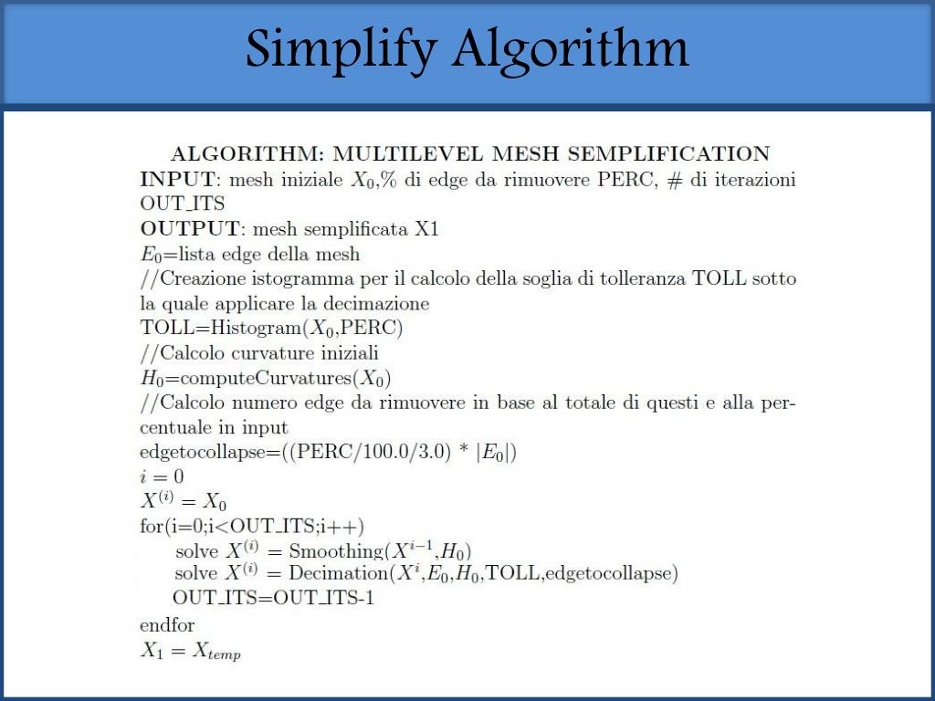 Algoritmo Simplify sm iterazioni OUT_ITS iterazioni