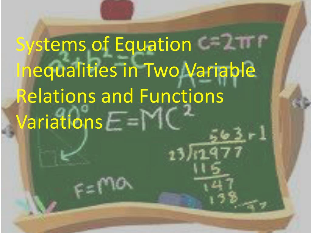 Systems of EquationInequalities in Two VariableRelations and FunctionsVariations