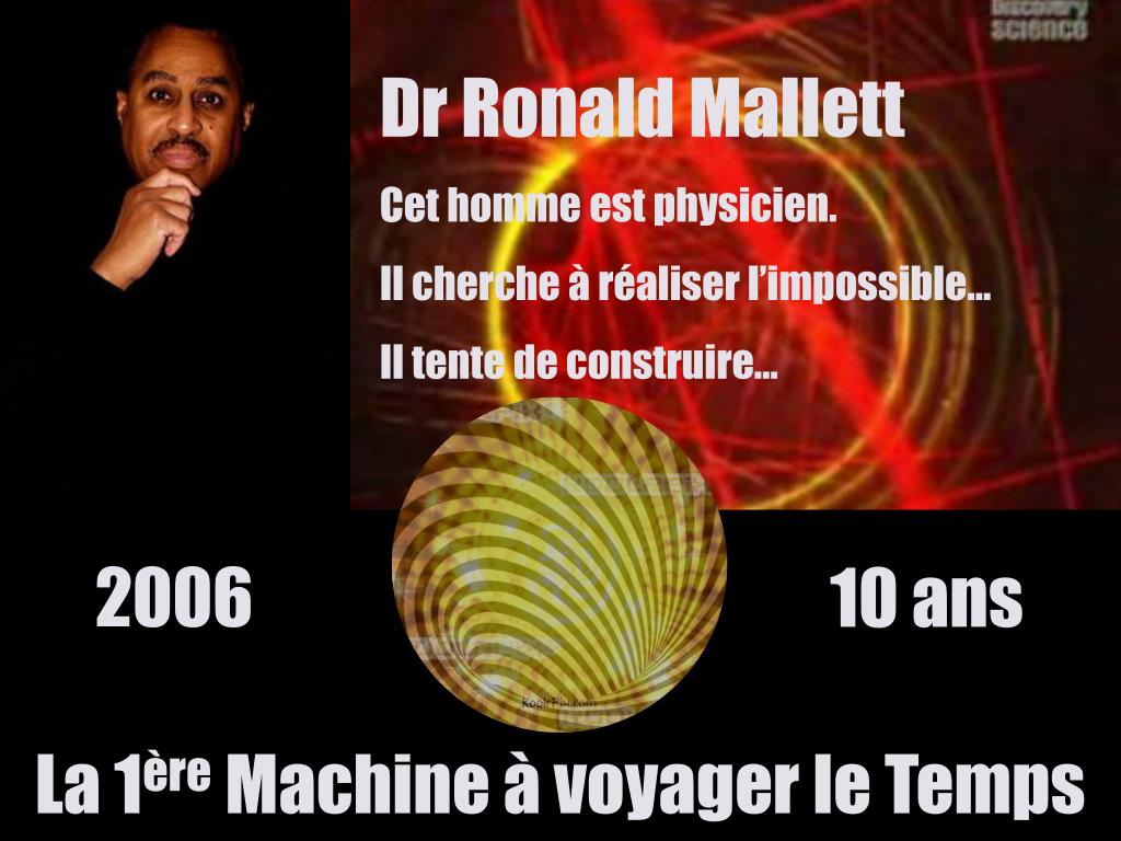 Dr Ronald Mallett Cet homme est physicien. Il cherche à réaliser l’impossible… Il tente de construire… 2006 10 ans La 1ère Machine à voyager le Temps