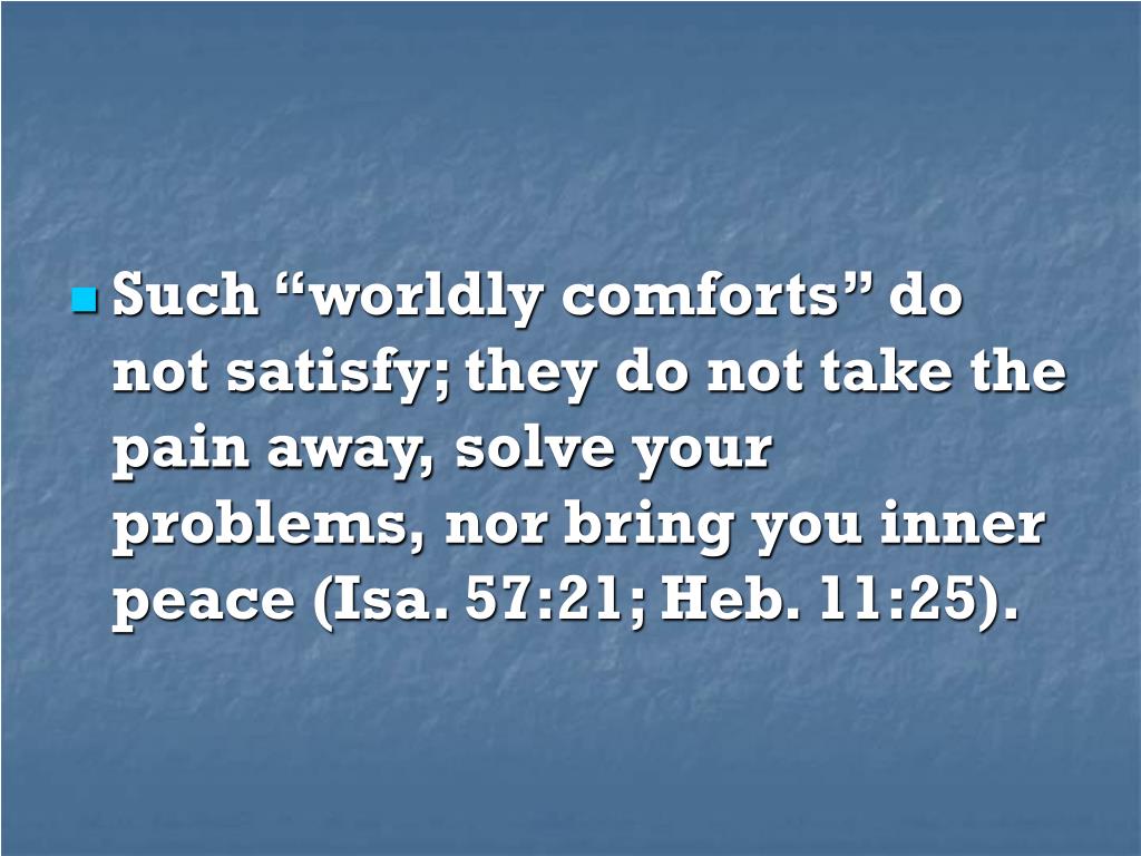 Such “worldly comforts” do not satisfy; they do not take the pain away, solve your problems, nor bring you inner peace (Isa. 57:21; Heb. 11:25).