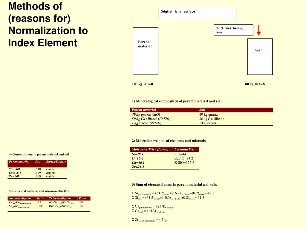 Soil vs. Crust Soil enriched in biochemically impt elements (C, N, S, Se) Soil depleted in alkali and alkine earths, Si, …. Date normalized to a relatively immobile element (Zr)