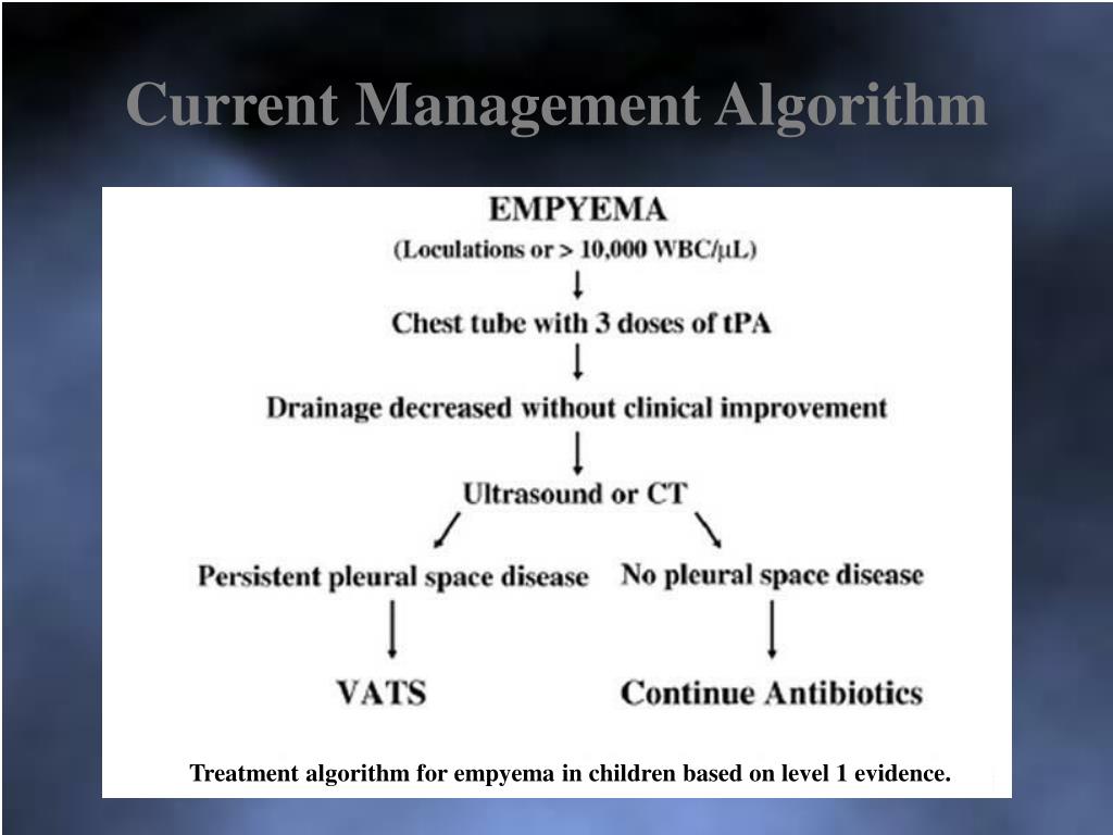 Treatment algorithm for empyema in children based on level 1 evidence. Current Management Algorithm