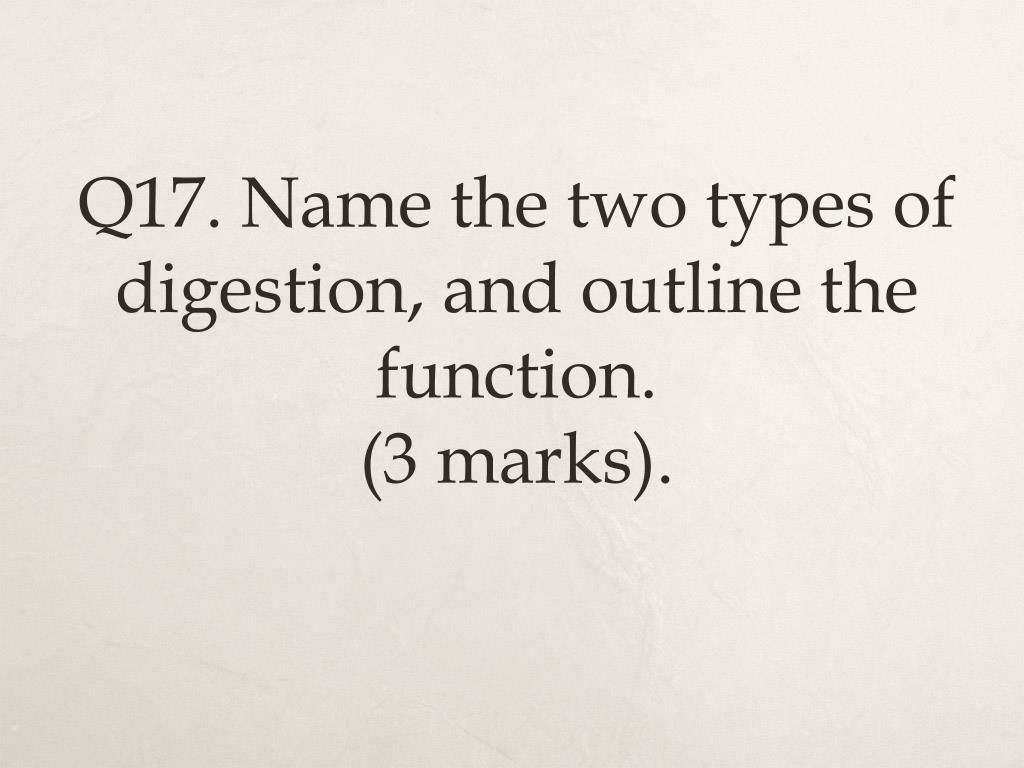 Q17. Name the two types of digestion, and outline the function. (3 marks).