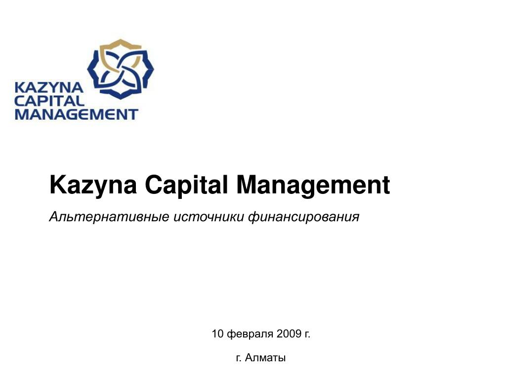 Kazyna Capital Management Альтернативные источники финансирования 10 февраля 2009 г. г. Алматы