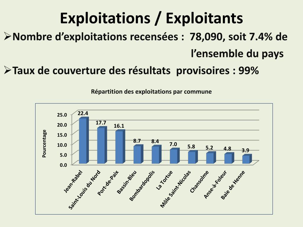 Enquête exploitation. Recensement Général de l’Agriculture. Résultats provisoires du Nord-Ouest Port-de-Paix, le 13 juin 2012 Georges B. BOLIVAR Rideler PHILIUS