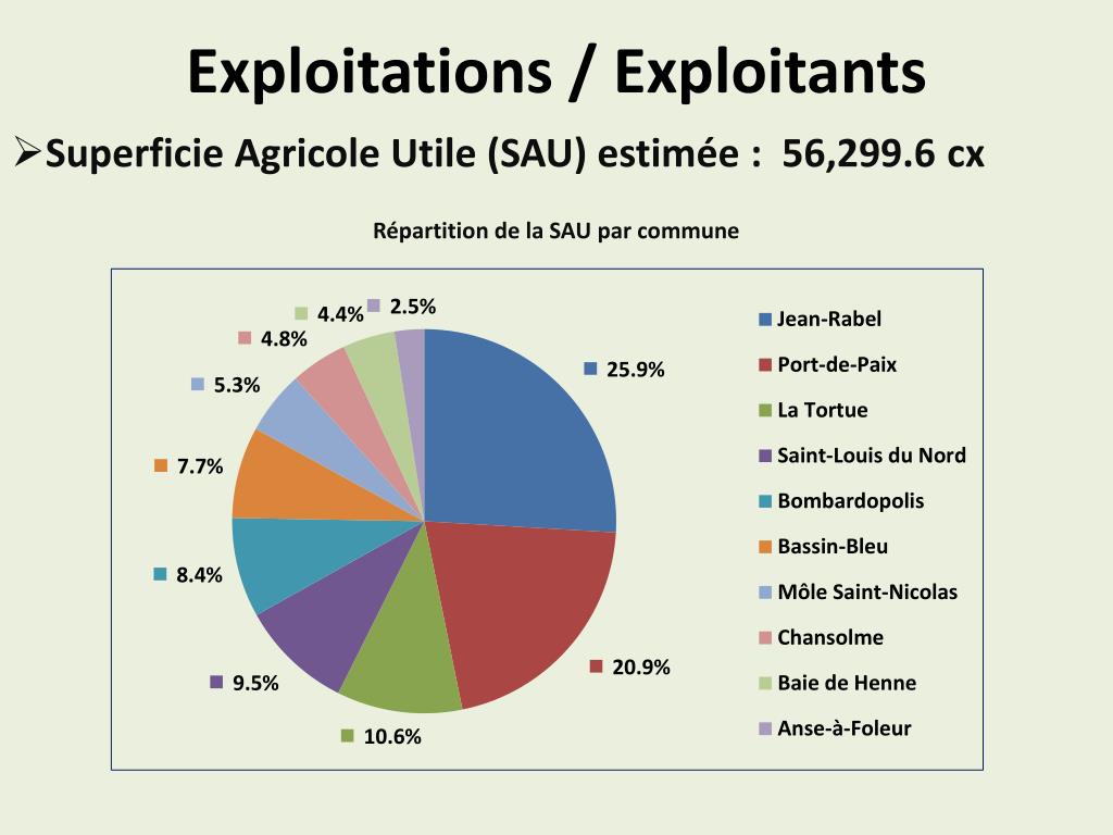 Exploitations / Exploitants Superficie Agricole Utile (SAU) estimée : 56,299.6 cx Répartition de la SAU par commune