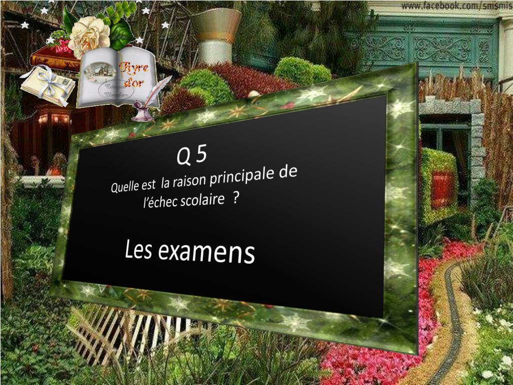 Q 5 Quelle est la raison principale de l’échec scolaire ? Les examens