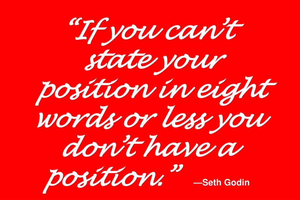 “If you can’t state your position in eight words or less you don’t have a position.” —Seth Godin