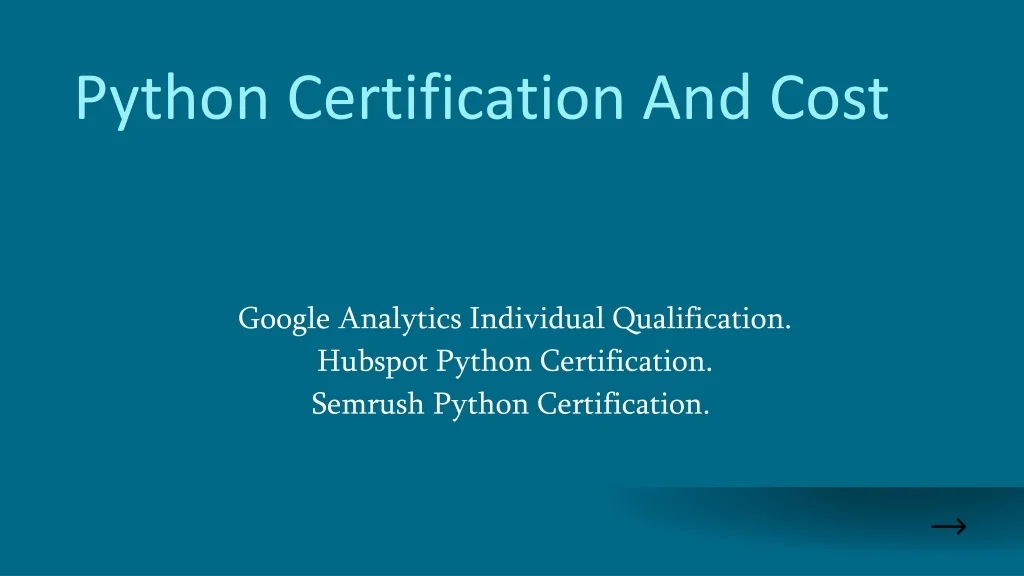 Python Certification And Cost • Google Analytics Individual Qualification. • Hubspot Python Certification. • Semrush Python Certification.