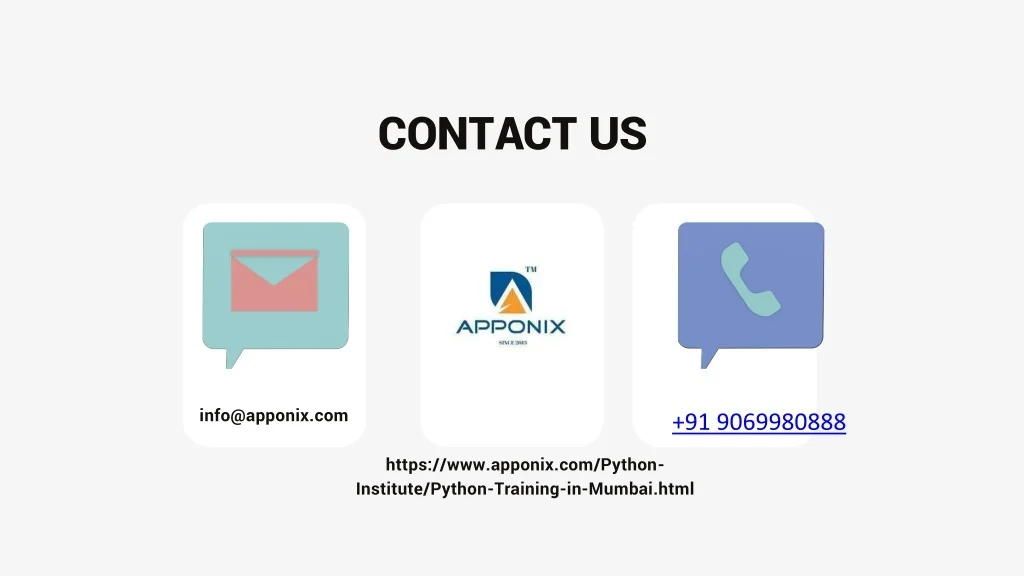 info@apponix.com • https://www.apponix.com/Python-Institute/Python-Training-in-Mumbai.html • +91 9069980888 • CONTACT US