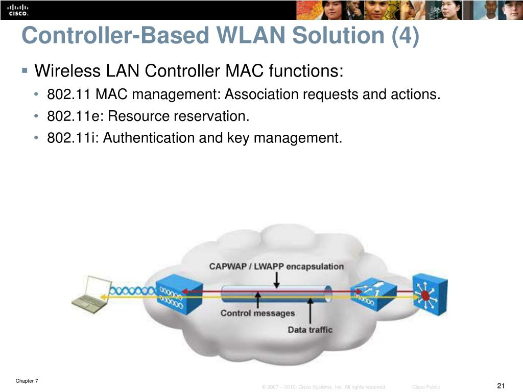 Controller-Based WLAN Solution (4) • Wireless LAN Controller MAC functions: • 802.11 MAC management: Association requests and actions. • 802.11e: Resource reservation. • 802.11i: Authentication and key management.