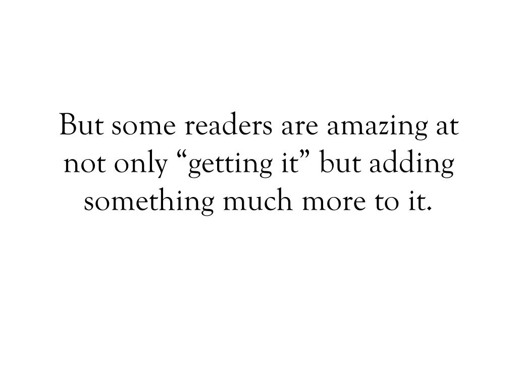 But some readers are amazing at not only “getting it” but adding something much more to it.