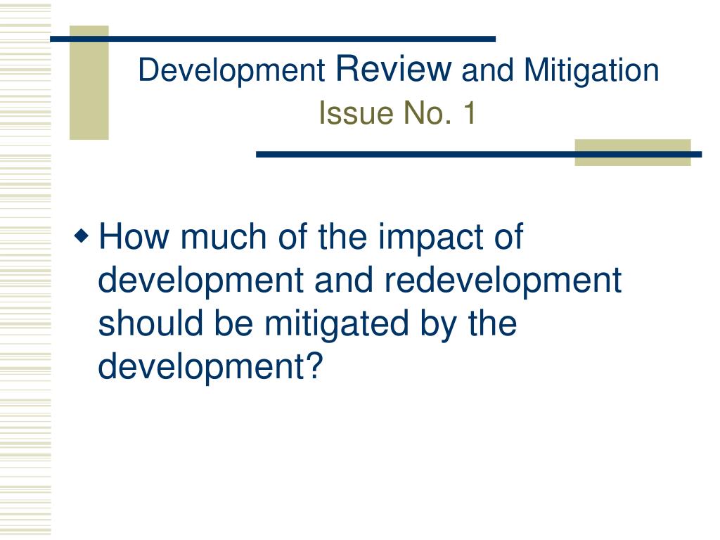 Development Review and MitigationIssue No. 1 • How much of the impact of development and redevelopment should be mitigated by the development?