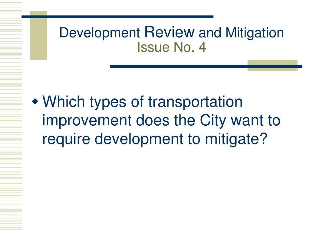 Development Review and MitigationIssue No. 4 • Which types of transportation improvement does the City want to require development to mitigate?