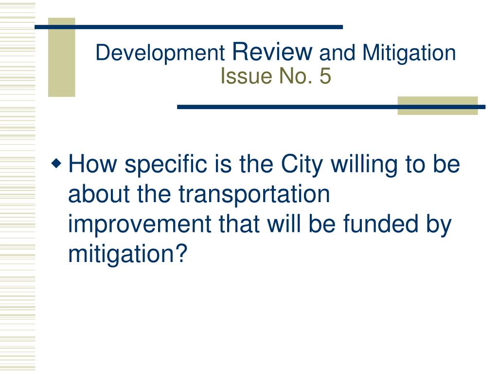Development Review and MitigationIssue No. 5 • How specific is the City willing to be about the transportation improvement that will be funded by mitigation?