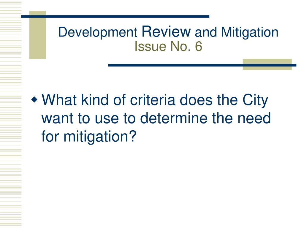 Development Review and MitigationIssue No. 6 • What kind of criteria does the City want to use to determine the need for mitigation?