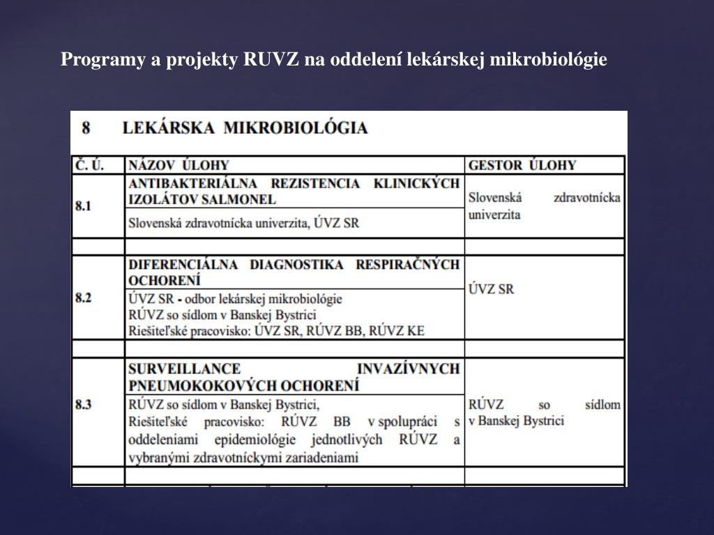 Programy a projekty RUVZ na oddelení lekárskej mikrobiológie
