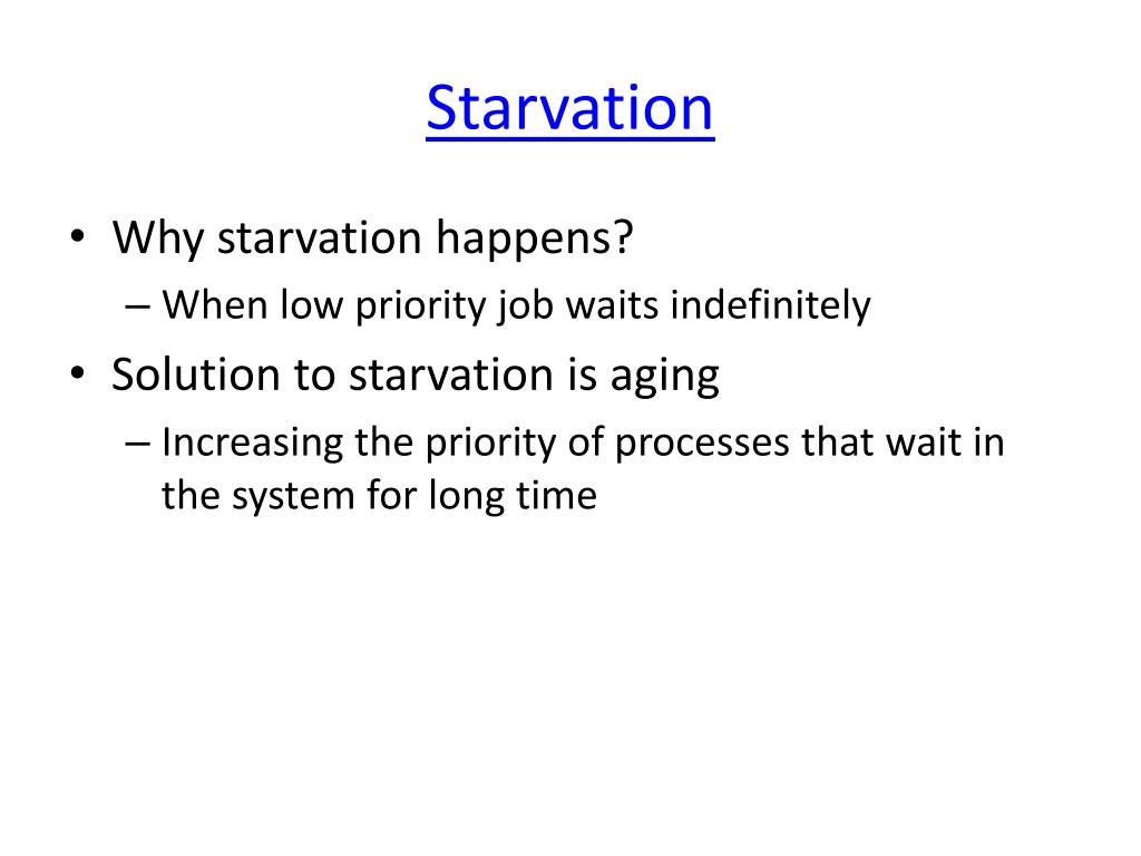 Starvation • Why starvation happens? • When low priority job waits indefinitely • Solution to starvation is aging • Increasing the priority of processes that wait in the system for long time