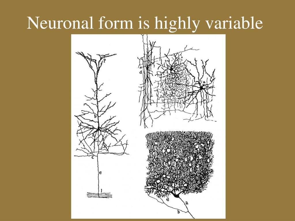 6 feet toe 100 µm Neuronal cell bodies:-typical assortment of organelles -point of origin for processes -transcriptional powerhouses -provide virtually all of the protein constituents for the entire cell