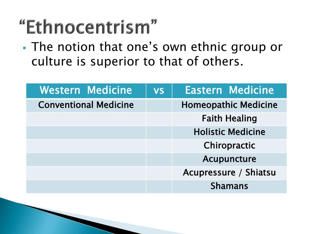“Ethnocentrism” • The notion that one’s own ethnic group or culture is superior to that of others.