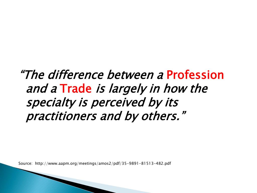 “The difference between a Profession and a Trade is largely in how the specialty is perceived by its practitioners and by others.” Source: http://www.aapm.org/meetings/amos2/pdf/35-9891-81513-482.pdf