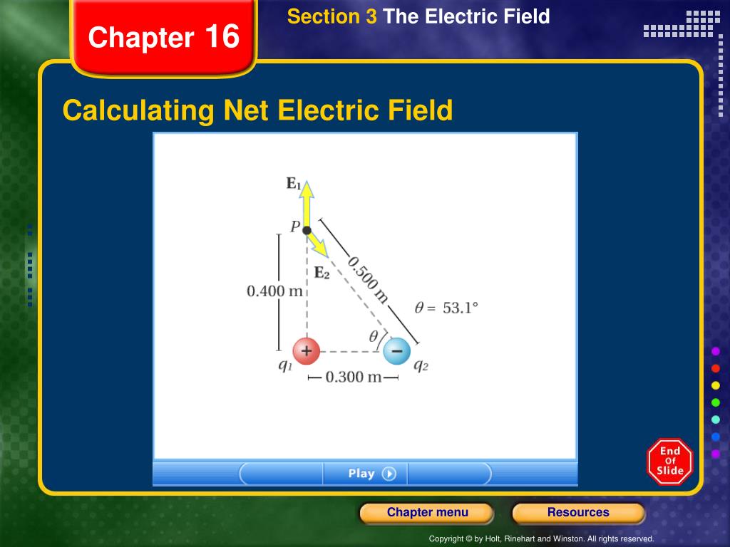 Section 3 The Electric Field Chapter 16 Calculating Net Electric Field