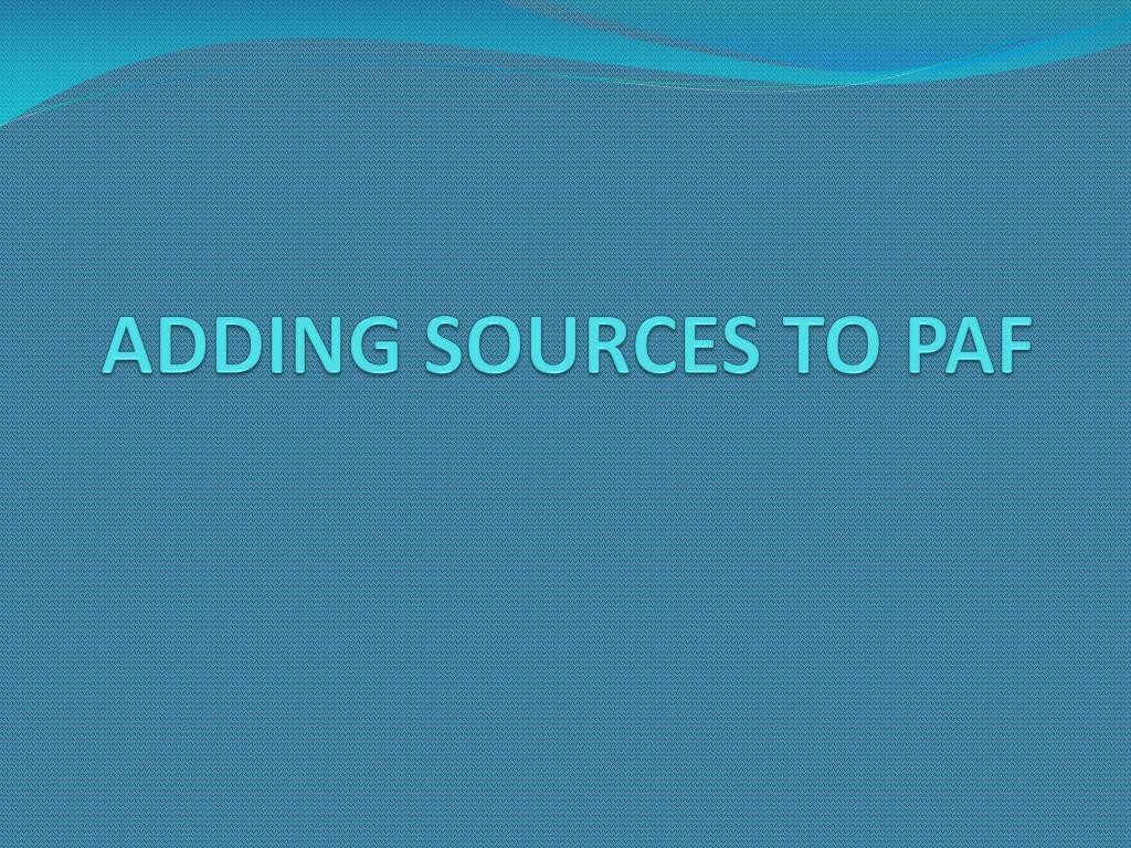 Learn how to add sources to your PAF document with detailed instructions on scanning, saving, and organizing documents. Follow a two-step process to add sources effectively. Make sure to avoid duplicating entries by merging sources. Easily share your PAF file.