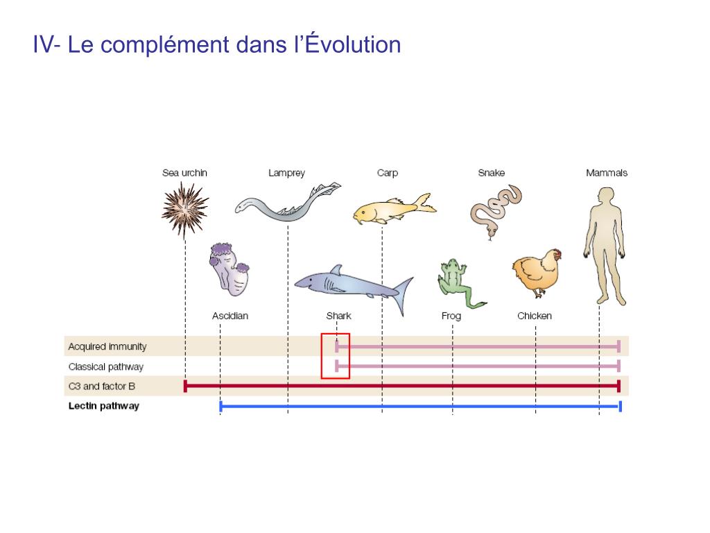 B B V- Récepteurs cellulaires des composants du complément « ancrage » A- Récepteur fragments « majeurs » • CR1 = CD35 : Récepteur du C3b et du C4b (GR, Leucocytes, FDC) • Cibles opsonisées ou complexes immuns (GR) puis phagocytose par macrophages du foie (cellules de Kupffer) • Rôle d’atténuation en liant C3b et C4b • CR2 = CD21 : Récepteur de C3d (Lymphos B, FDC) • Reconnaissance des lymphos B par virus EBV • CD21 diminue seuil d’activation BCR et favorise survie B « fixation à un R » Reconnaissance via BCR Activation + Fragments iC3b = C3d Reconnaissance via BCR + CR2 Activation +++ (1000x plus efficace)