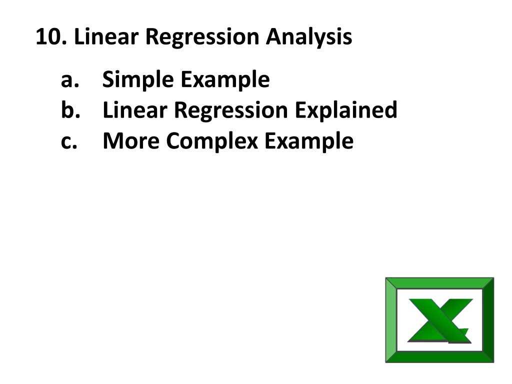 10. Linear Regression Analysis • Simple Example • Linear Regression Explained • More Complex Example